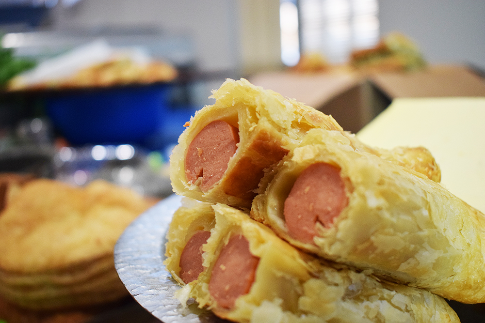 Λουκανικόπιτα με ζύμη σφολιάτας.